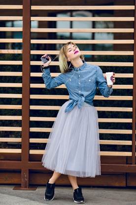 Τελευταίος και απίστευτος συνδυασμός η επιλογή μιας τούλινης ή πιο ιδιαίτερης φούστας ακόμα και παντελονιού με έντονα print με ένα jean πουκάμισο ή ένα μονόχρωμο t-shirt με ένα denim μπουφανάκι. Μια γόβα ή το σωστό sneaker θα απογειώσουν το στυλ σου!